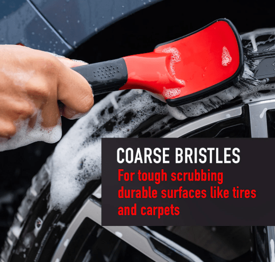 Anti-Slip Rubber Grip The soft thermal plastic rubber grip offers an anti-slip and shock-absorbent feature, ensuring a secure hold while minimizing the impact of shocks. Additionally, the ergonomic handle design reduces fatigue and enhances overall comfort during use. Rubber Safety Bumper The thermal plastic rubber safety bumper offers a robust protective barrier that effectively prevents scratches and damage during the cleaning process. With this bumper in place, you can confidently scrub away dirt, grime, and brake dust without worry. Short Handle Length A short handle is the most ideal length for cleaning tires. This tire brush’s coarse bristles provide the most thorough cleaning for tires, but also the most friction. The short handle allows you the strongest grip with maximum control. MaxShine’s Detailing Brush Hanger provides the perfect solution for storing your short handle brushes on walls, vans, and any detailing location! Its iron construction and corrosion-resistant finish ensure a stylish and durable holder that withstands chemical spills and leaks with ease.